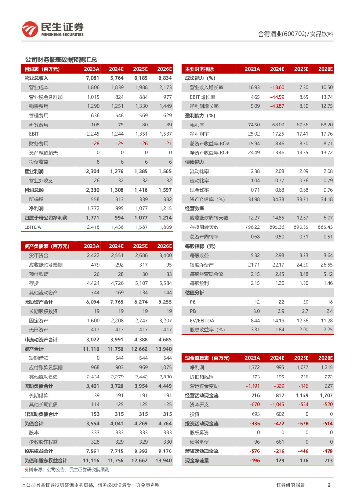 民生证券:舍得酒业(600702)-2024年三季报点评:短期承压持续,市场仍处调整期.pdf