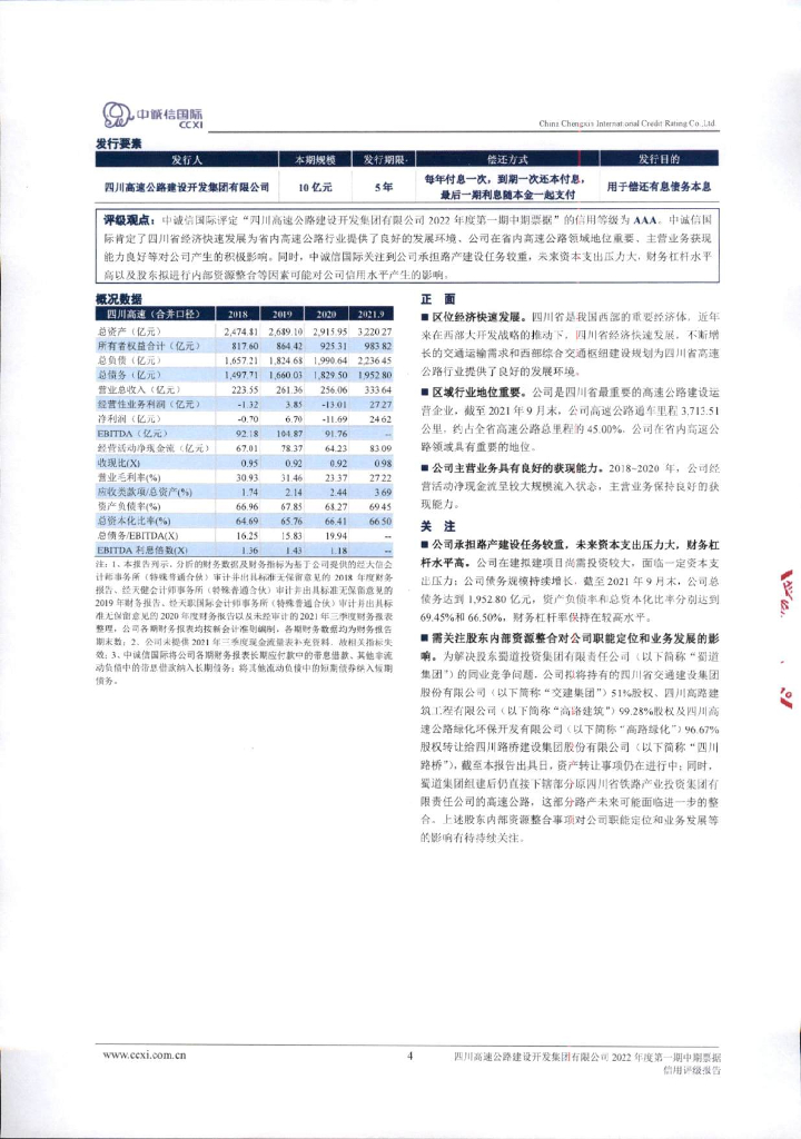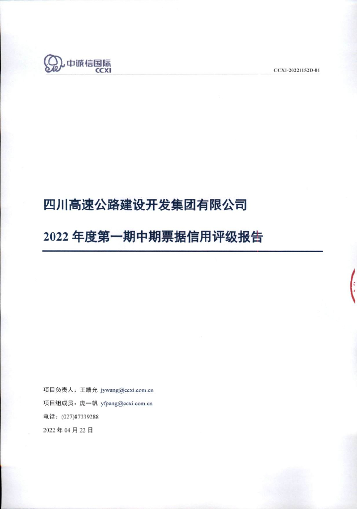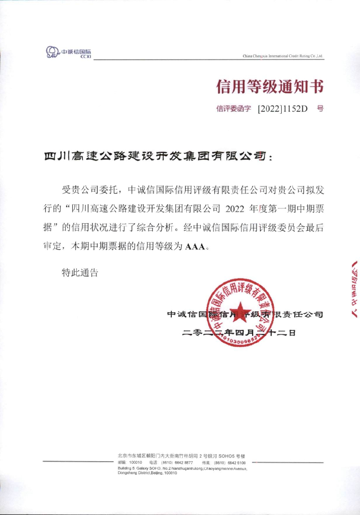 中诚信:四川高速公路建设开发集团有限公司2022年度第一期中期票据信用评级报告.pdf