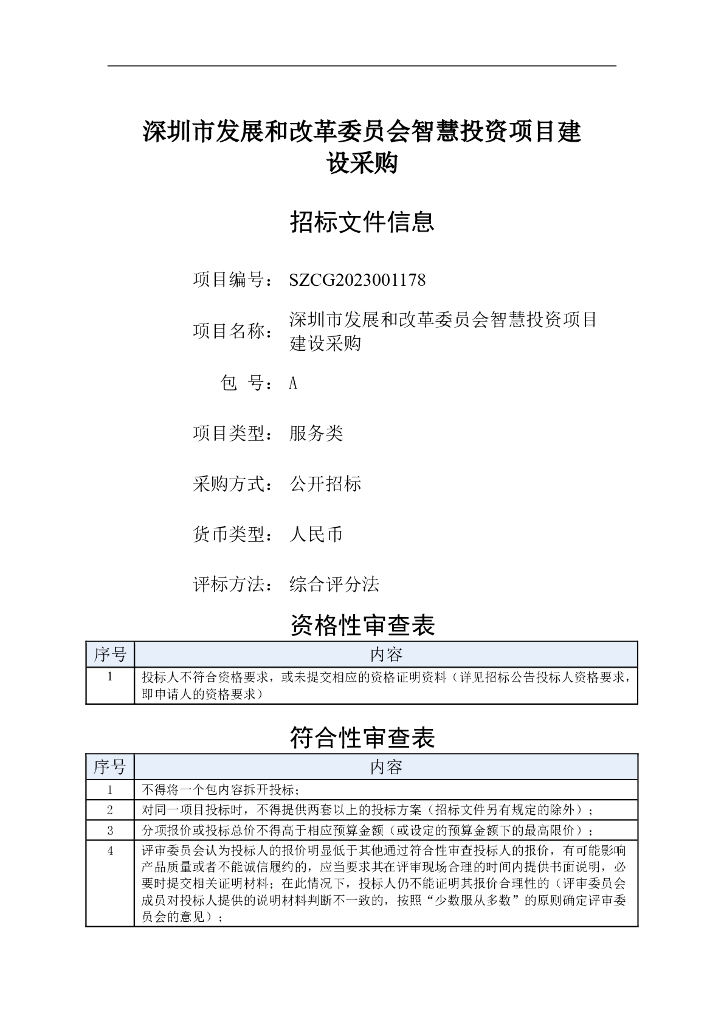 智慧发改-深圳市发展和改革委员会智慧投资项目招标文件.pdf