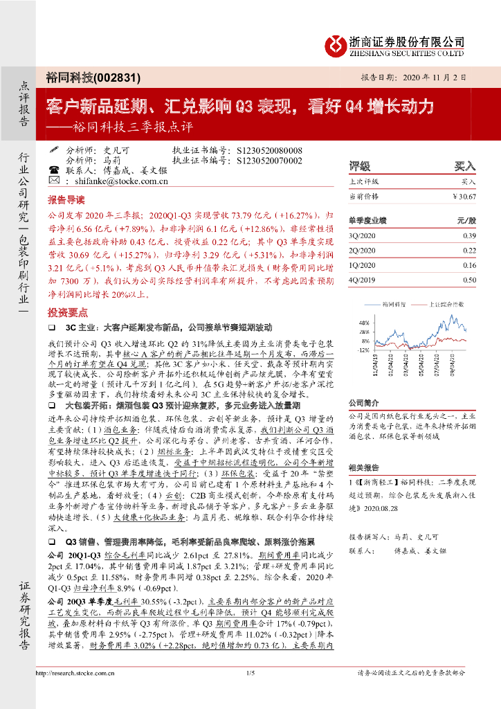 浙商证券:裕同科技三季报点评:客户新品延期、汇兑影响Q3表现,看好Q4增长动力.pdf