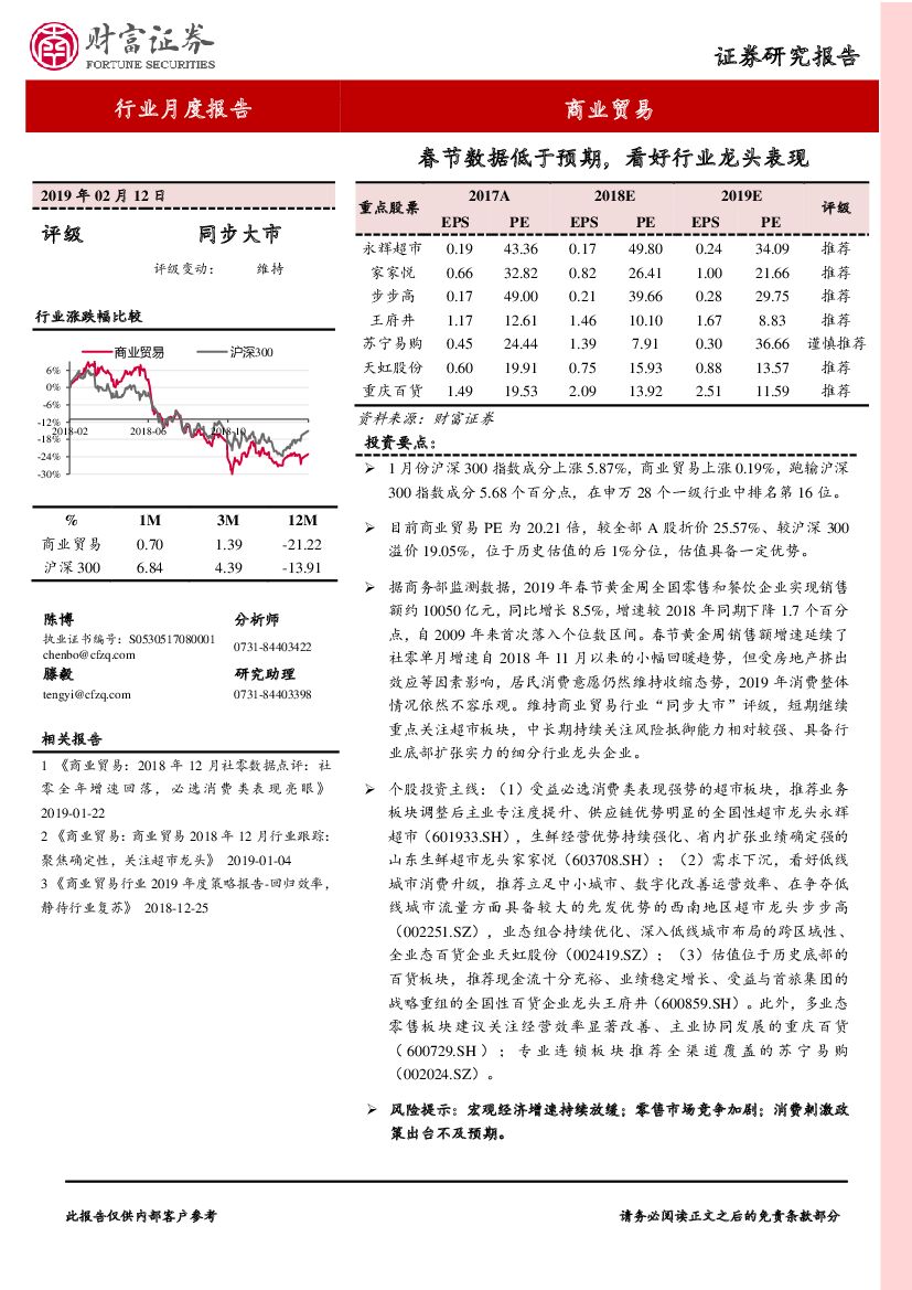 财富证券:商业贸易行业月度报告:春节数据低于预期,看好行业龙头表现.pdf