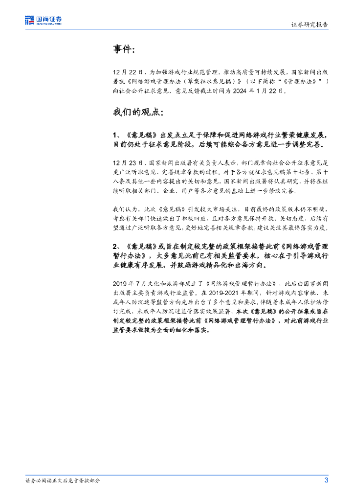 国海证券:游戏行业政策事件点评:监管处于征求意见稿阶段,关注后续落实力度.pdf