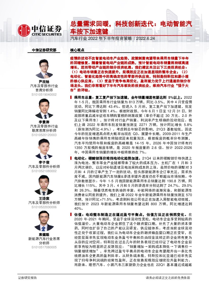 中信证券:汽车行业2022年下半年投资策略:总量需求回暖,科技创新迭代,电动智能汽车按下加速键.pdf