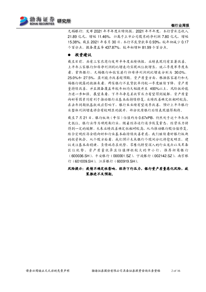 渤海证券:银行业周报:业绩快报陆续出炉,中报行情可期.pdf