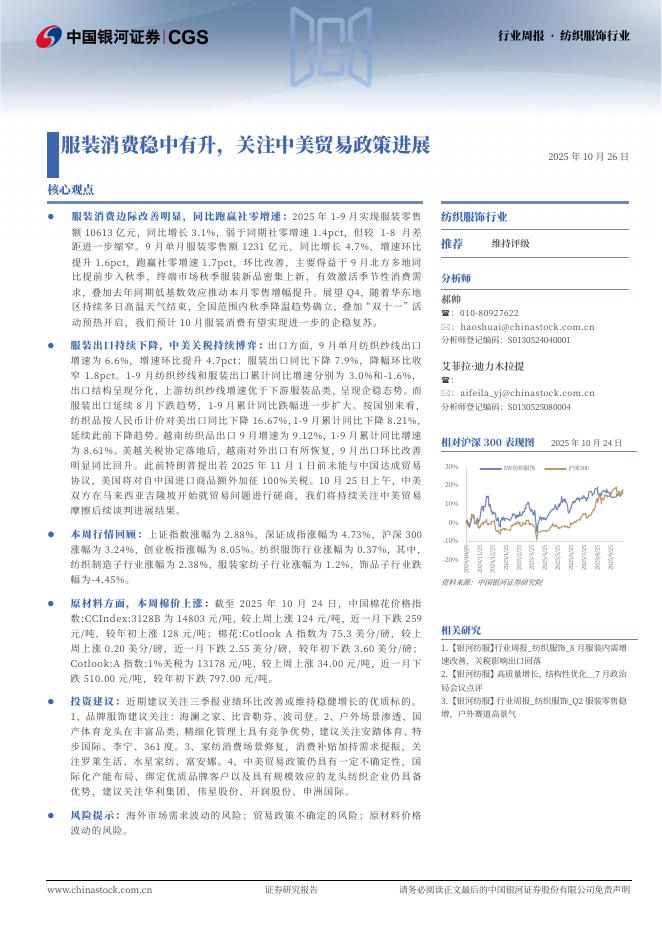 中国银河:纺织服饰行业周报·纺织服饰行业:服装消费稳中有升,关注中美贸易政策进展.pdf