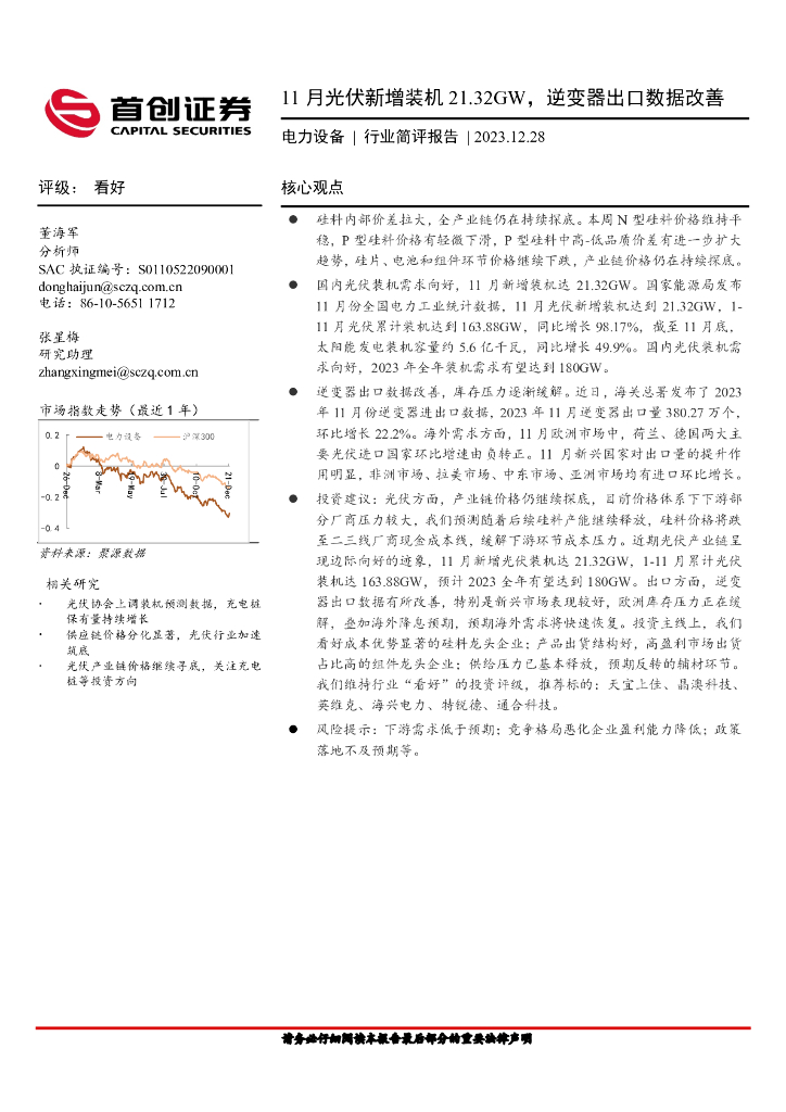 首创证券:电力设备:11月光伏新增装机21.32GW,逆变器出口数据改善.pdf