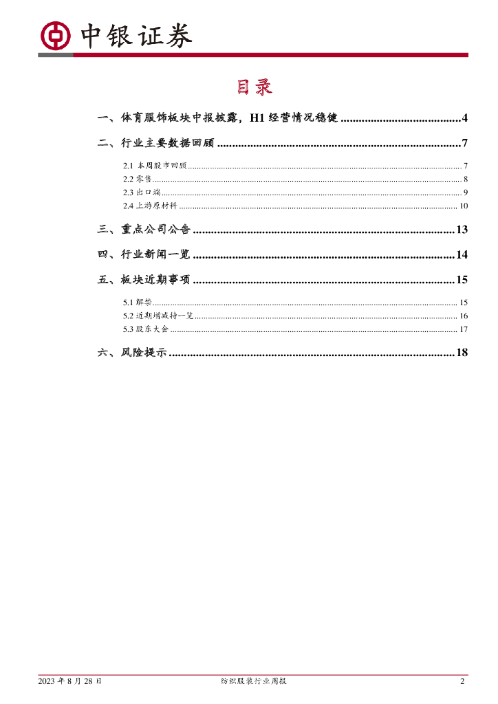 中银证券:纺织服装行业周报:体育龙头H1经营稳健,期待盈利水平进一步提升.pdf