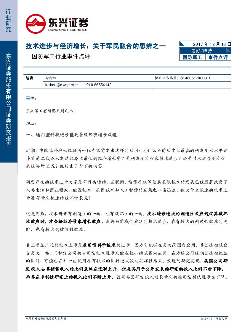 东兴证券:国防军工行业事件点评:技术进步与经济增长:关于军民融合的思辨之一.pdf