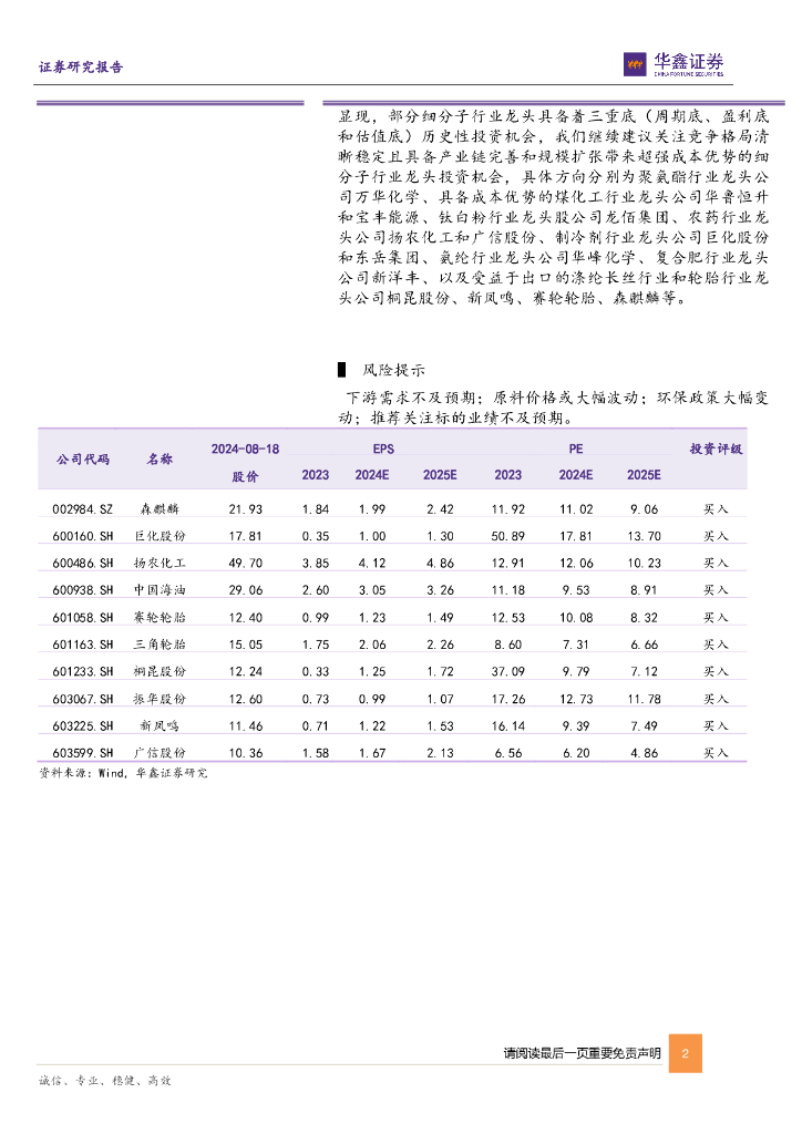 华鑫证券:基础化工行业周报:硫酸、二氯甲烷等涨幅居前,建议继续关注石化板块和轮胎板块.pdf