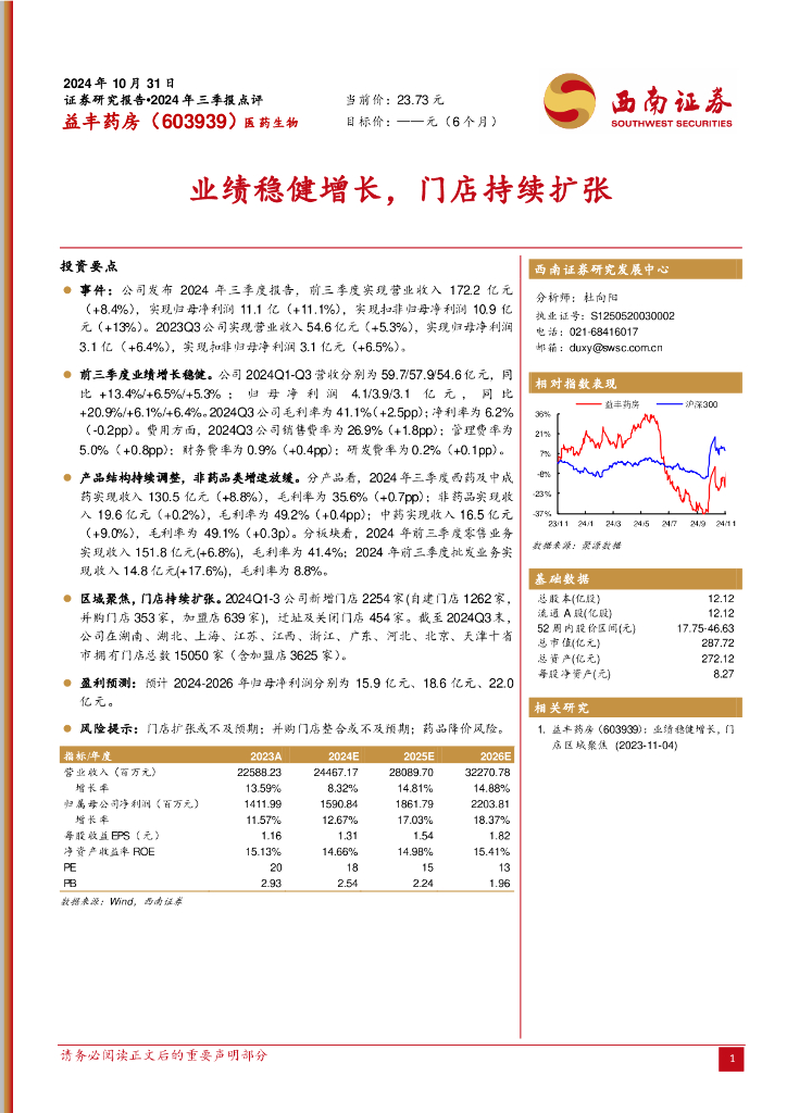 西南证券:益丰药房(603939)-业绩稳健增长,门店持续扩张.pdf