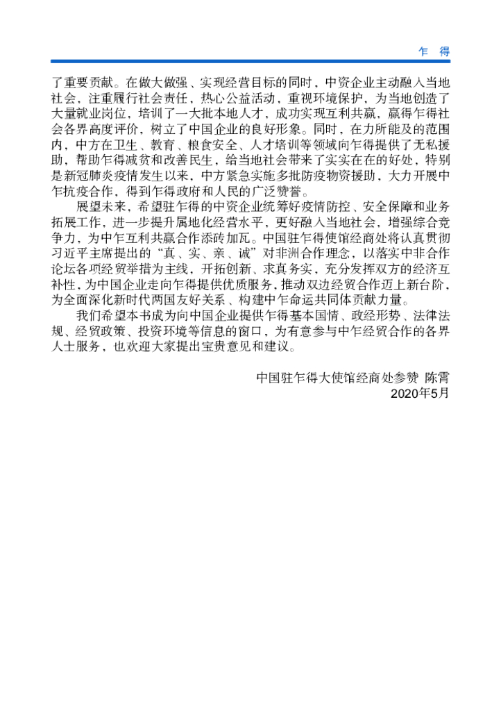 商务部:对外投资合作国别(地区)指南:乍得(2020年版).pdf