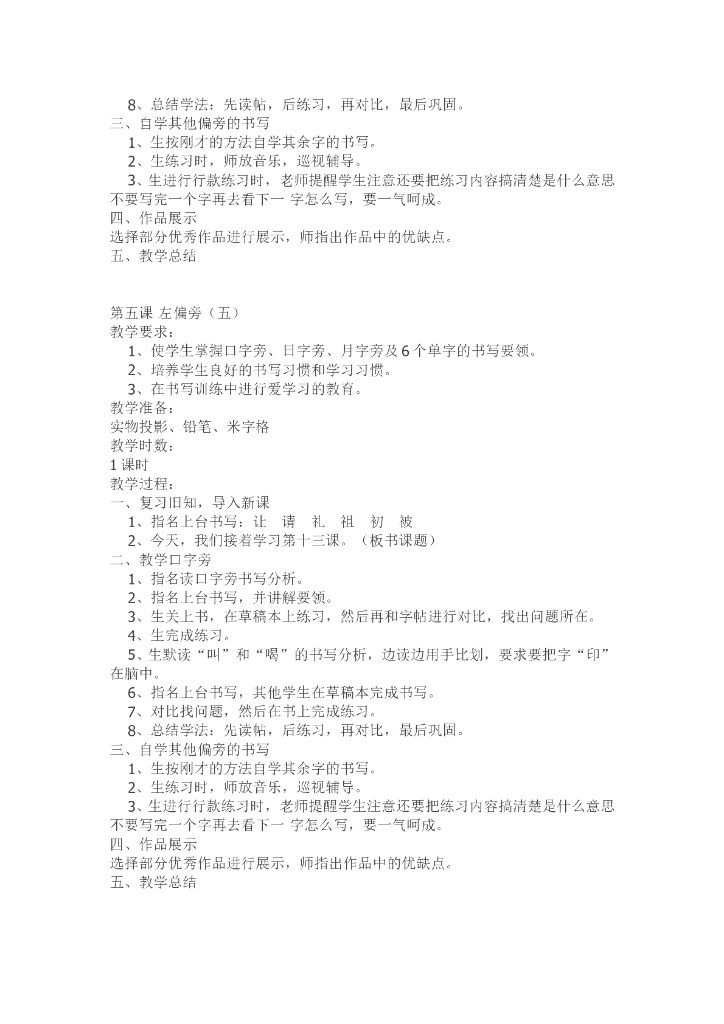 小学二年级上册书法教案.doc