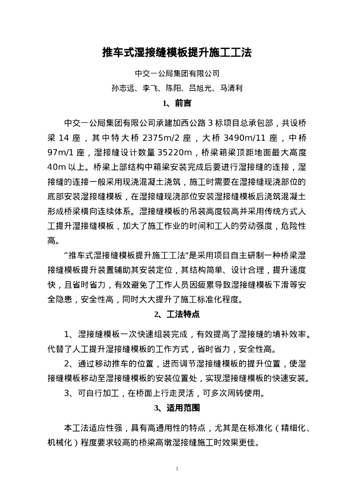 QHGF-2022104 推车式湿接缝模板提升施工工法.doc