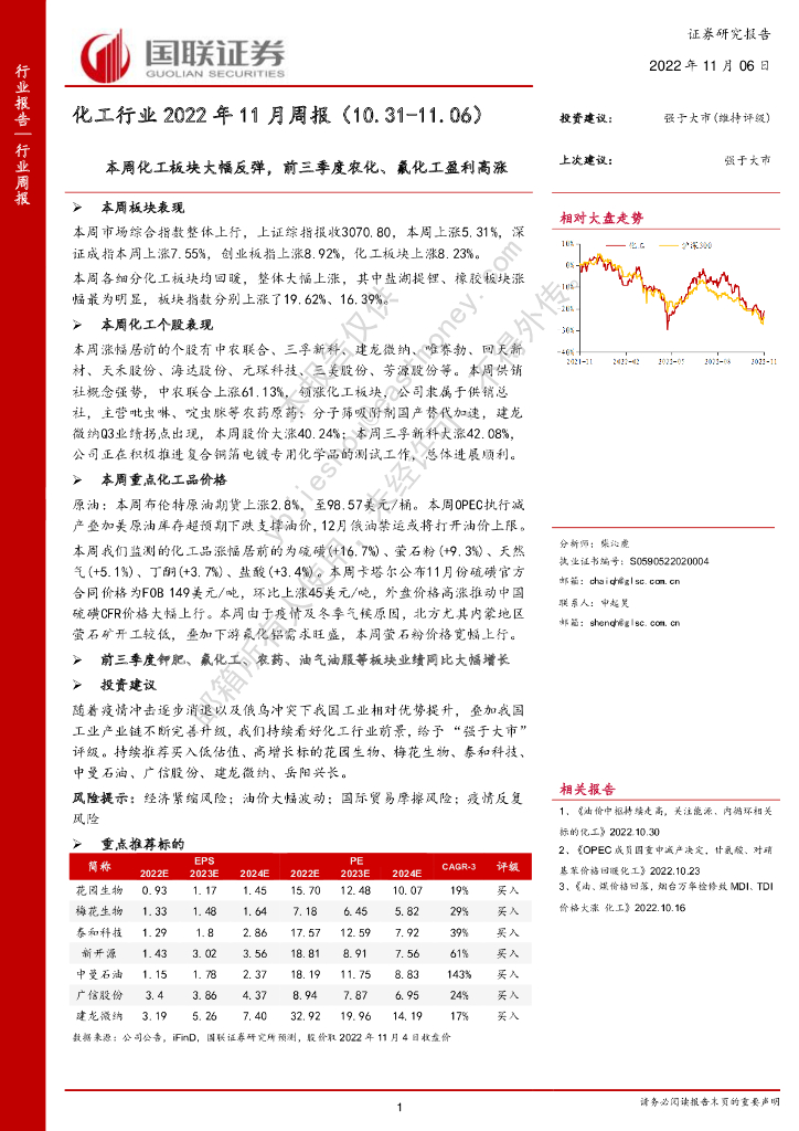 国联证券:化工行业2022年11月周报:本周化工板块大幅反弹,前三季度农化、氟化工盈利高涨.pdf