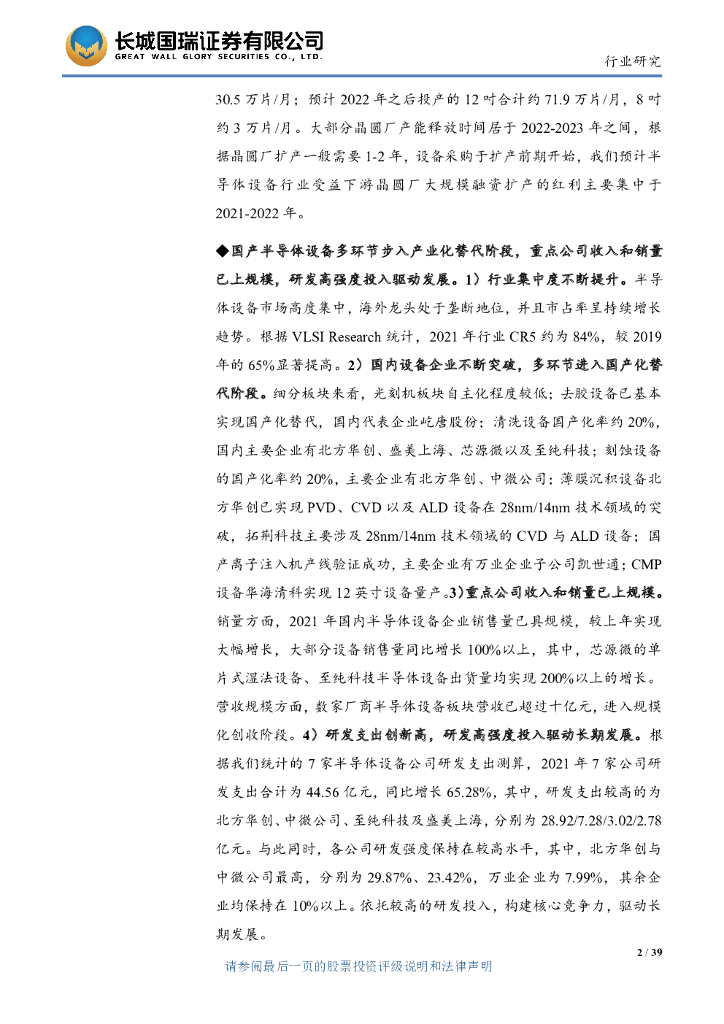 长城国瑞证券:半导体设备行业:行业处于国产替代初期,2022年设备需求强劲.pdf
