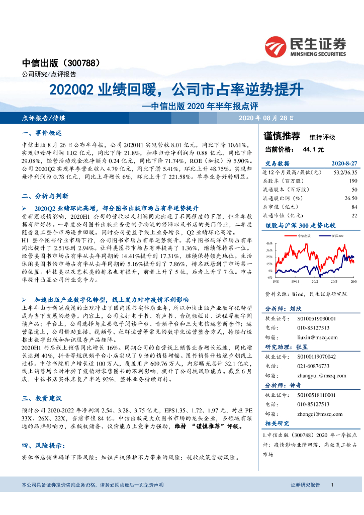 民生证券:中信出版2020年半年报点评:2020Q2业绩回暖,公司市占率逆势提升.pdf