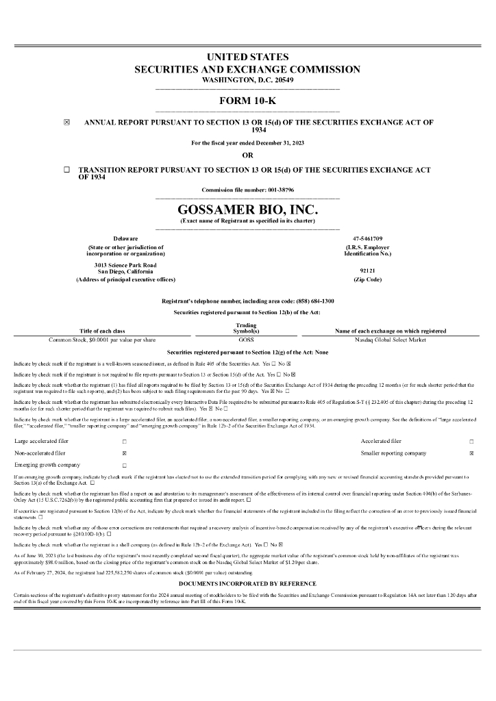 Gossamer Bio, Inc.(GOSS)2023财年年度报告(英文版).pdf