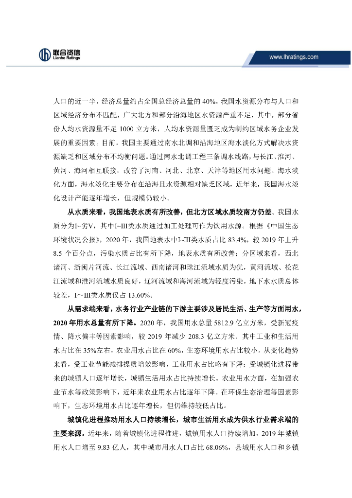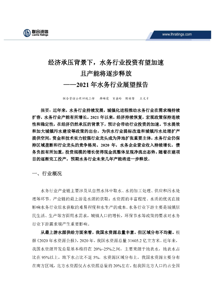 联合资信:经济承压背景下,水务行业投资有望加速且产能将逐步释放-2021年水务行业展望报告.pdf