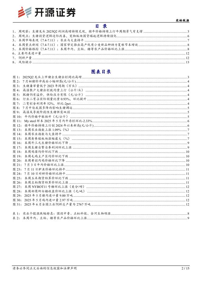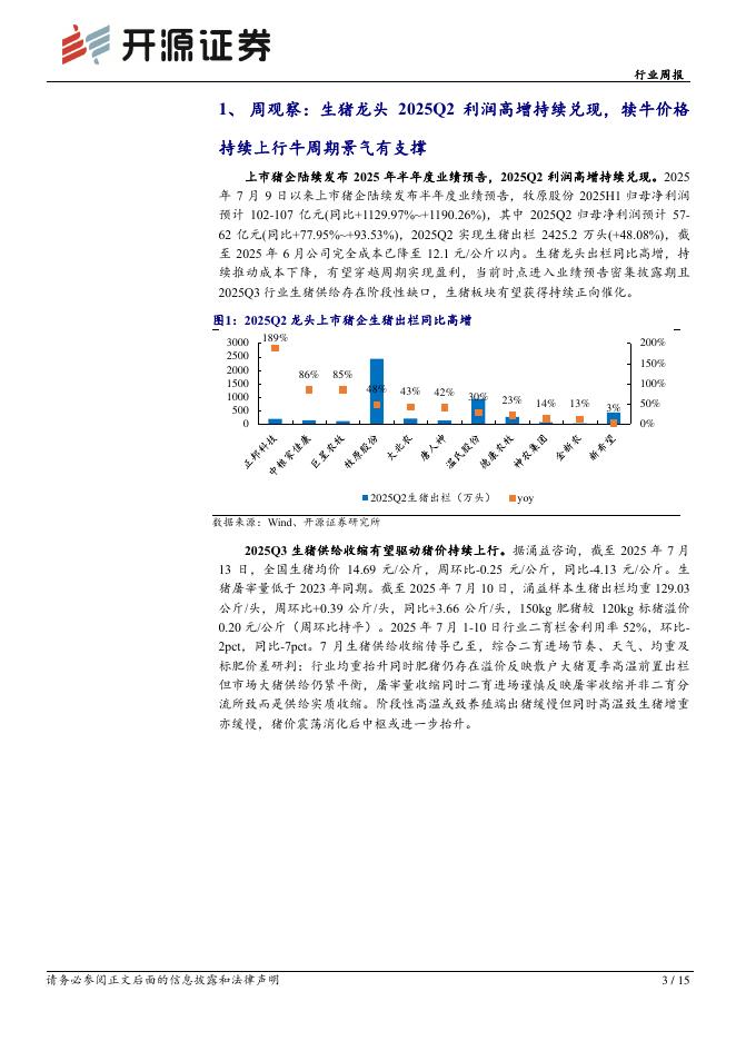 开源证券:农林牧渔行业周报:生猪龙头2025Q2利润高增,犊牛价格持续上行牛周期景气有支撑.pdf