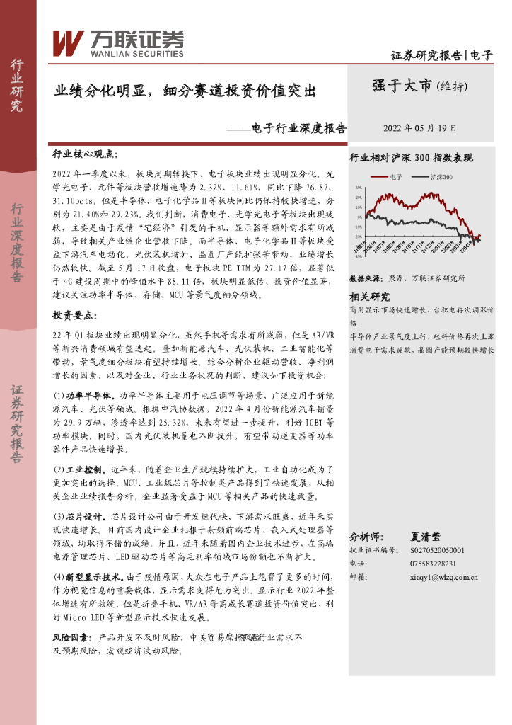 万联证券:电子行业深度报告:业绩分化明显,细分赛道投资价值突出.pdf