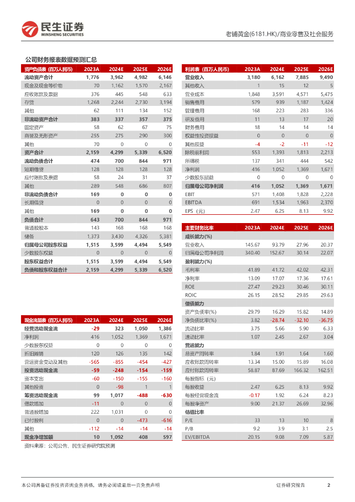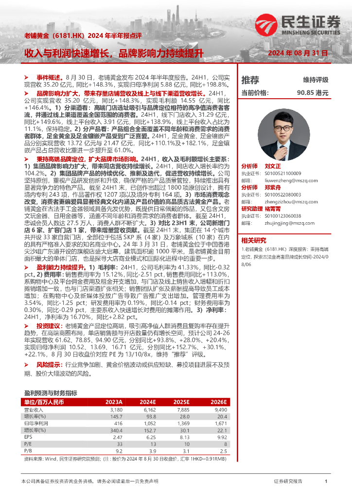 民生证券:老铺黄金(06181)港股公司研究报告-2024年半年报点评:收入与利润快速增长,品牌影响力持续提升.pdf