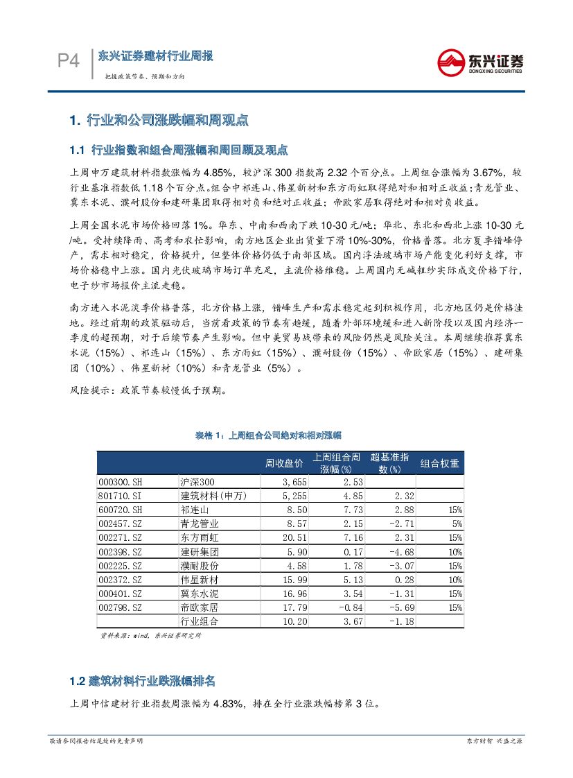 东兴证券:建材行业周报:把握政策节奏、预期和方向.pdf