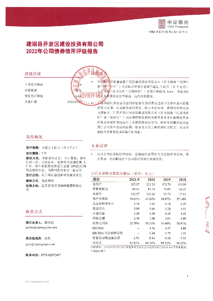 鹏元:建湖县开发区建设投资有限公司2022年公司债券信用评级报告.pdf