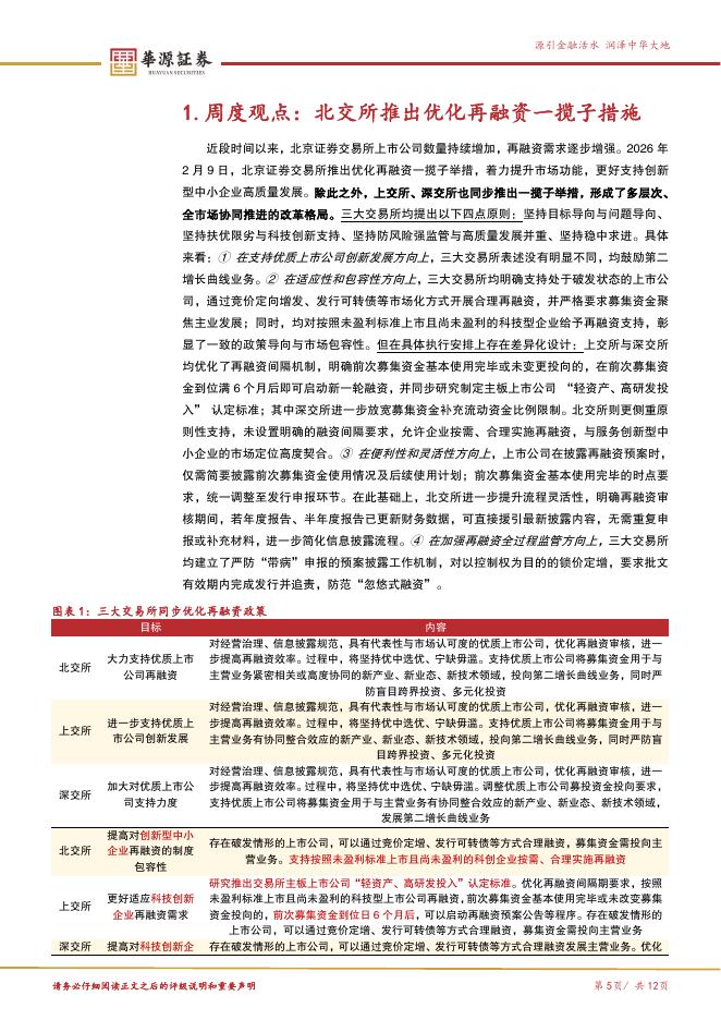 华源证券:北交所周观察第六十五期:北交所推出优化再融资一揽子措施,政策暖意释放推动市场资金预期改善-260222.pdf