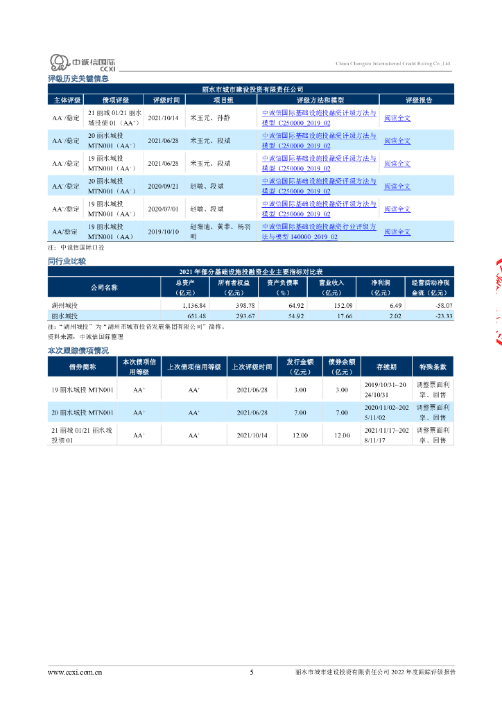 中诚信:丽水市城市建设投资有限责任公司2022年度跟踪评级报告.pdf