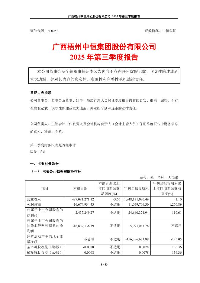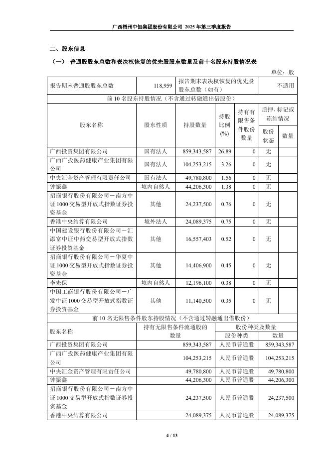 600252-中恒集团:广西梧州中恒集团股份有限公司2025年第三季度报告.pdf