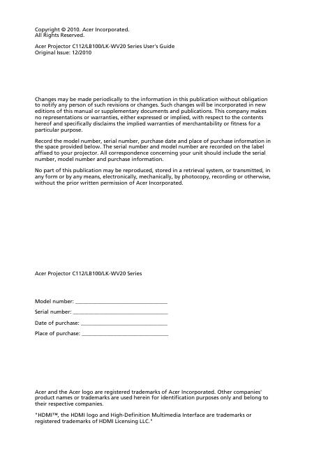 宏碁投影机C112/LB100/LK-WV20系列用户指南.pdf