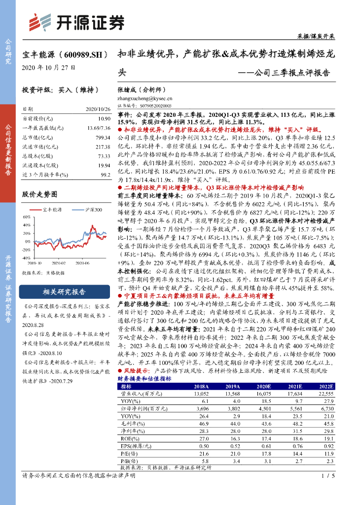 开源证券:宝丰能源(600989)-公司三季报点评报告:扣非业绩优异,产能扩张&成本优势打造煤制烯烃龙头.pdf