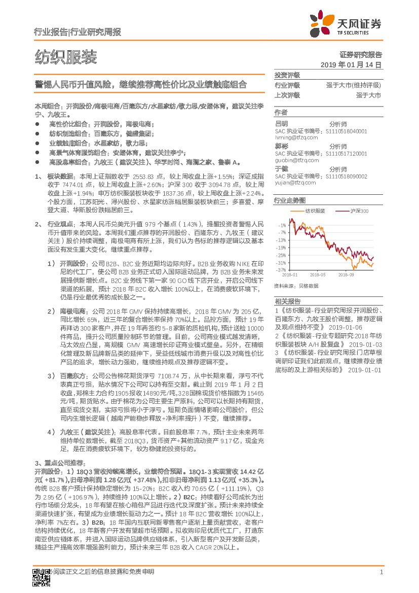 天风证券:纺织服装行业研究周报:警惕人民币升值风险,继续推荐高性价比及业绩触底组合.pdf