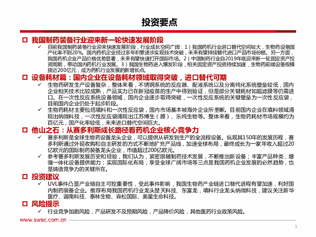西南证券:医药供应链自主可控系列——制药设备:生物药需求有望引领行业新一轮发展,国产替代空间广阔.pdf