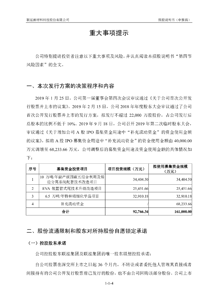 联泓新材料科技股份有限公司深交所主板IPO上市招股说明书.pdf