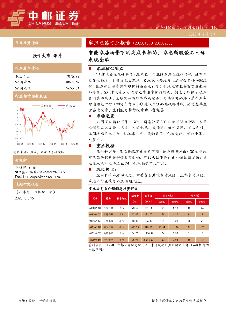 中邮证券:家用电器行业报告:智能家居场景下的高成长标的,家电新股萤石网络表现亮眼.pdf