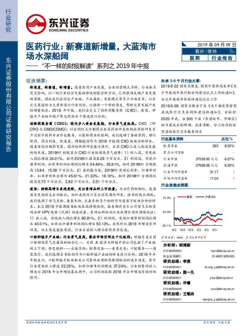 东兴证券:医药行业:“不一样的财报解读”系列之2019年中报-新赛道新增量,大蓝海市场水深船阔.pdf