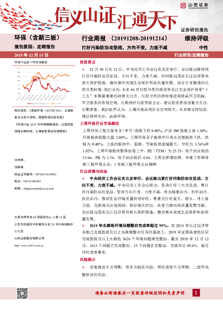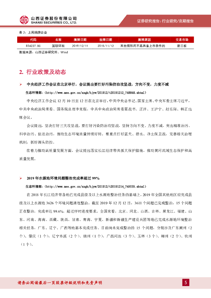 山西证券:环保(含新三板)行业周报:打好污染防治攻坚战,方向不变,力度不减.pdf