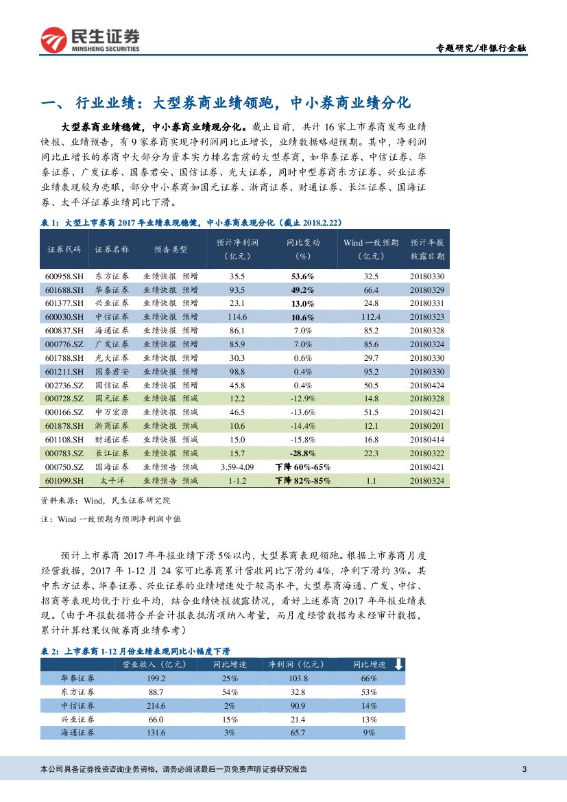 民生证券:券商2017年年报前瞻:大型券商各业务条线领跑市场,关注业绩确定性.pdf