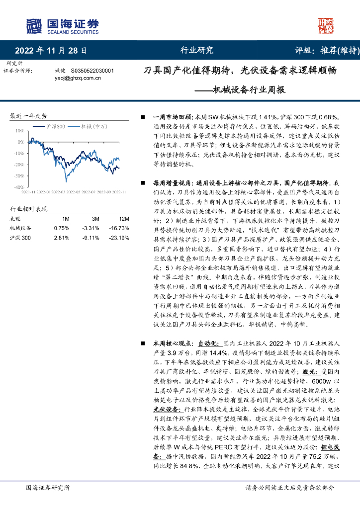 国海证券:机械设备行业周报:刀具国产化值得期待,光伏设备需求逻辑顺畅.pdf