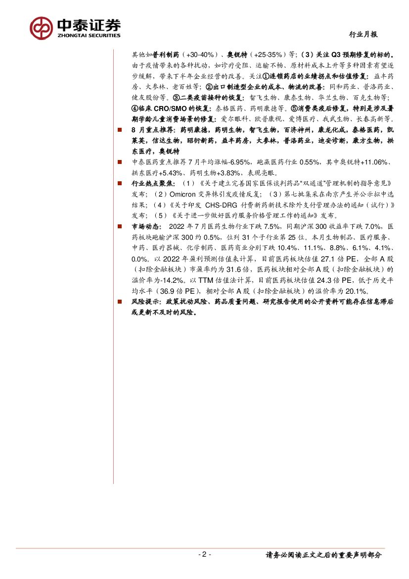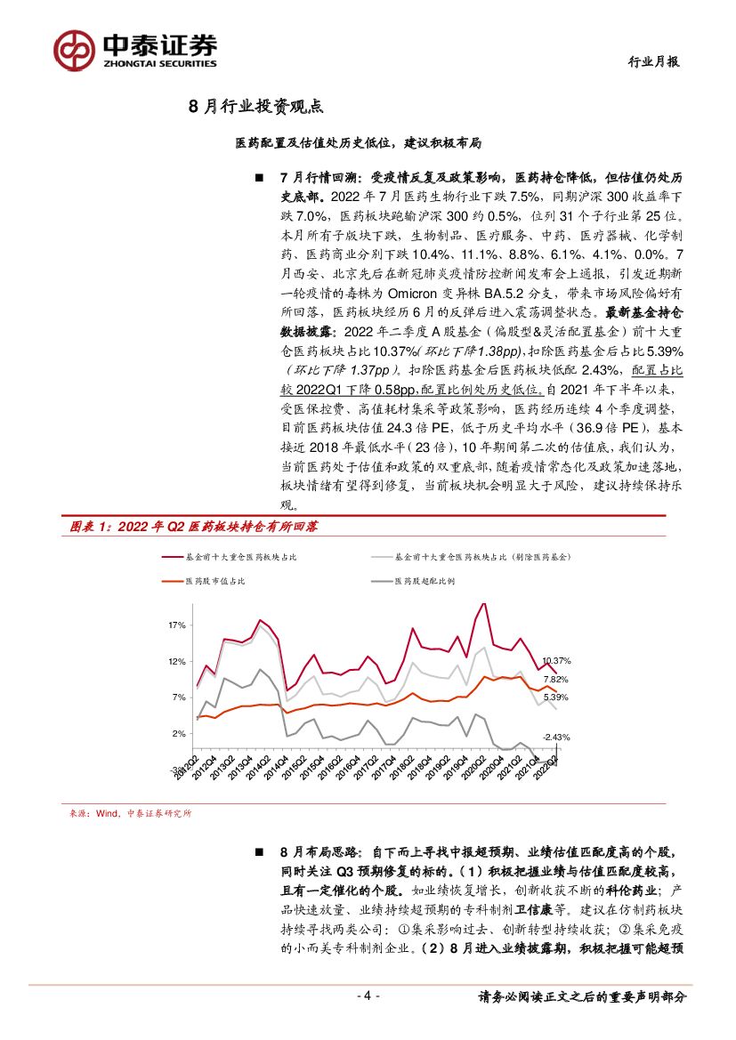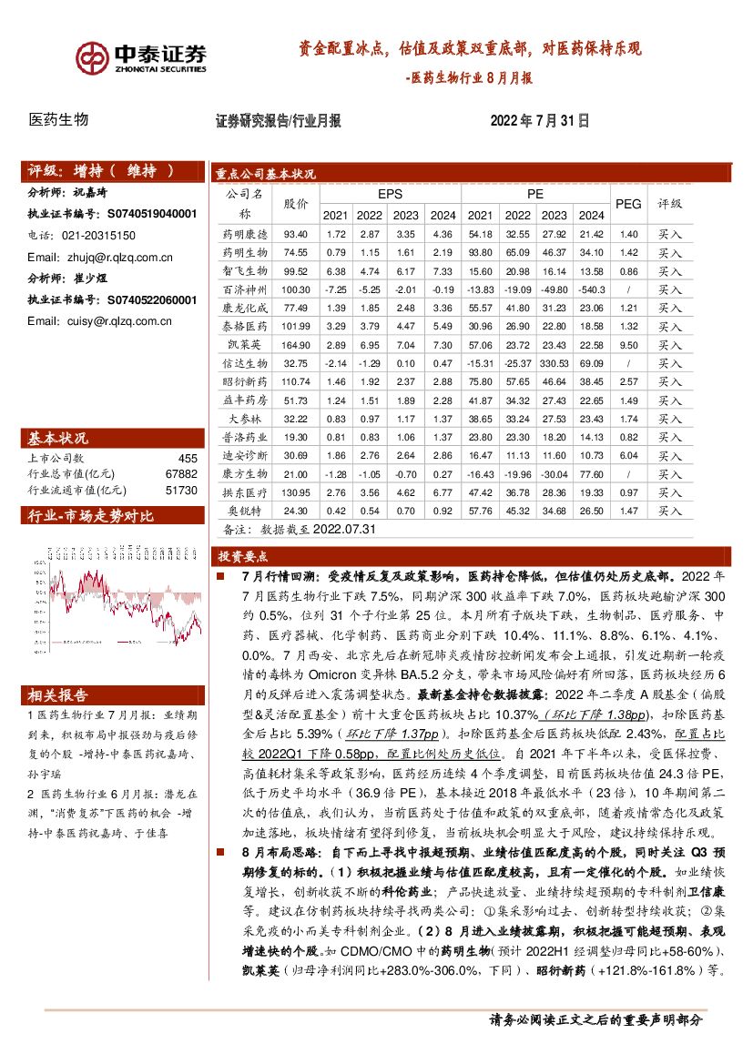 中泰证券:医药生物行业8月月报:资金配置冰点,估值及政策双重底部,对医药保持乐观.pdf