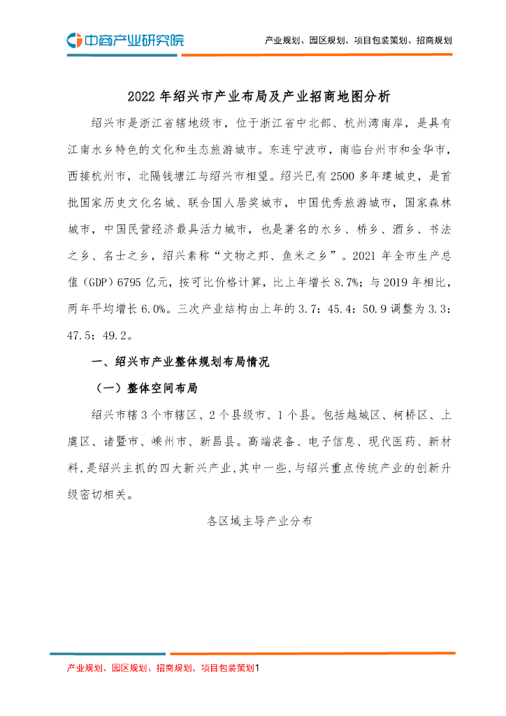 2022年绍兴市产业布局及产业招商地图分析.pdf