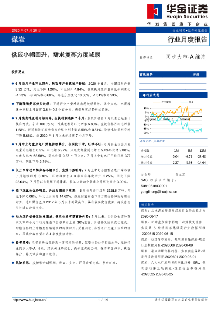 华金证券:煤炭行业月度报告:供应小幅回升,需求复苏力度减弱.pdf
