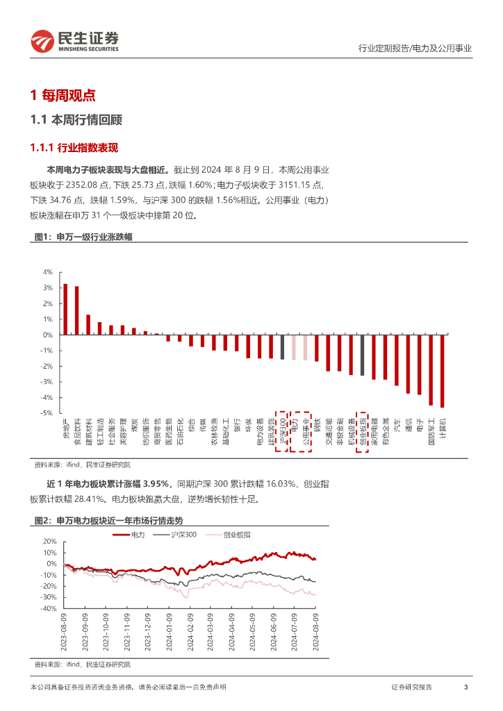 民生证券:电力及公用事业行业周报(24WK32):加快构建新型电力系统,山东现货市场取得突破.pdf