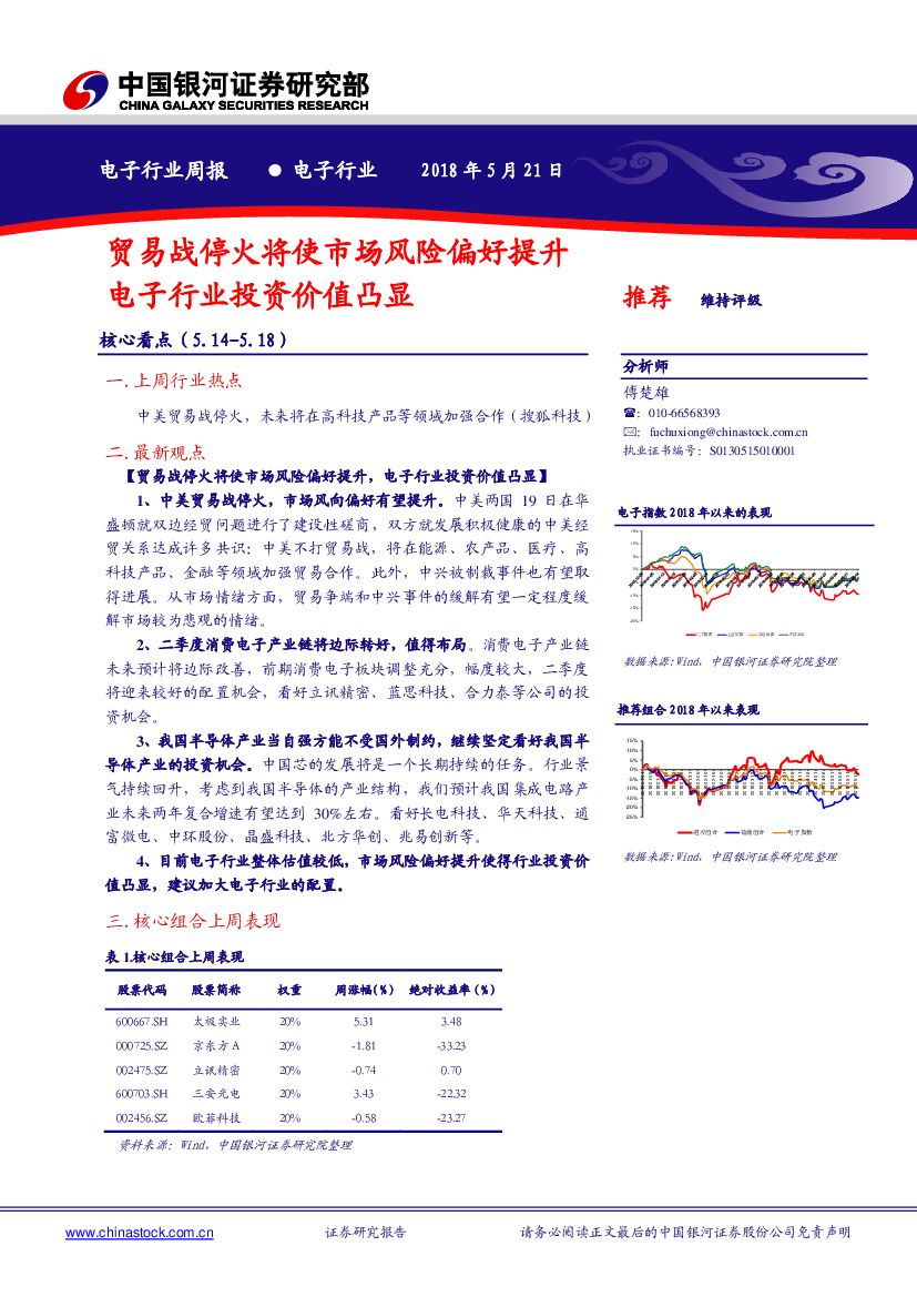 中国银河:电子行业周报:贸易战停火将使市场风险偏好提升 电子行业投资价值凸显.pdf