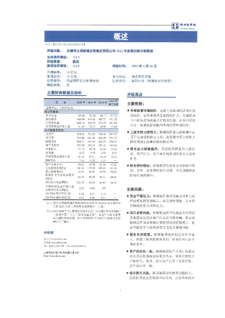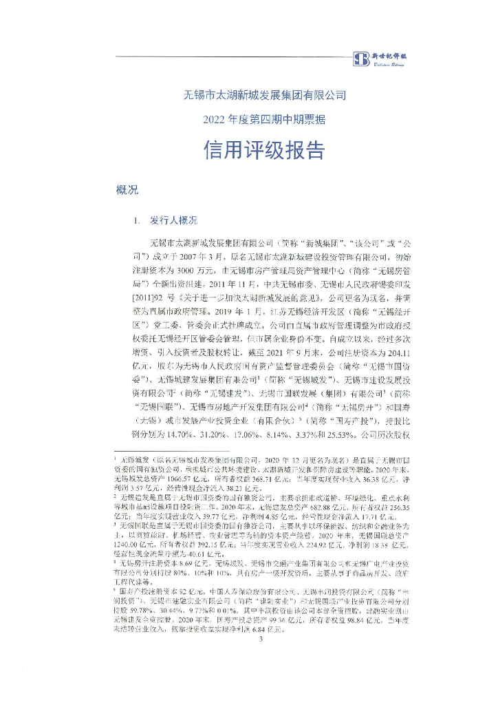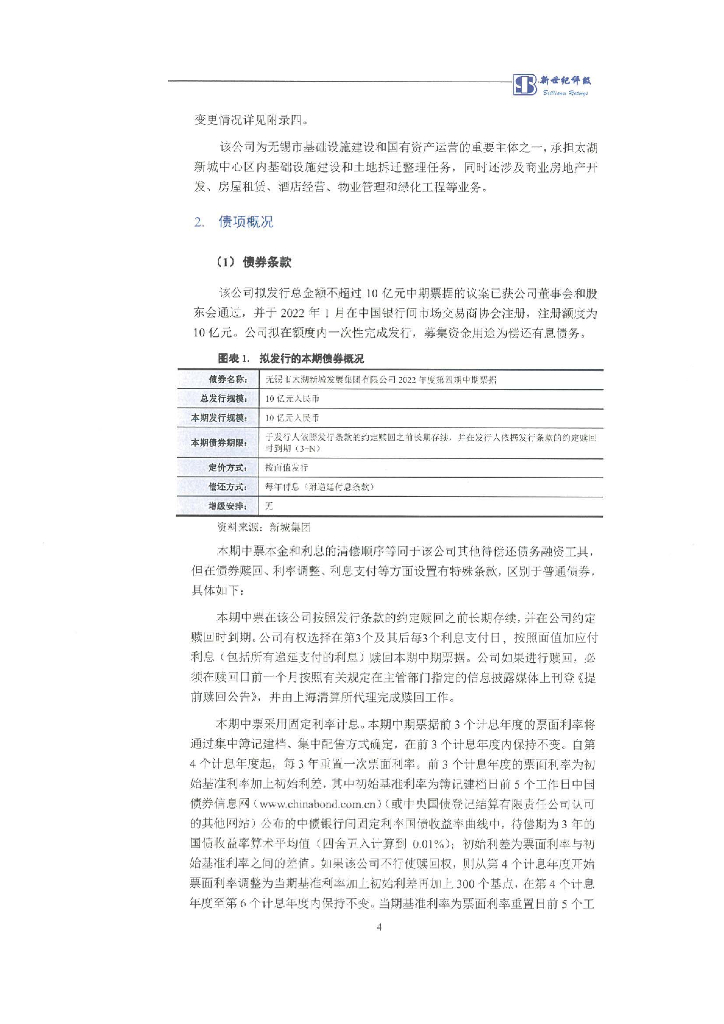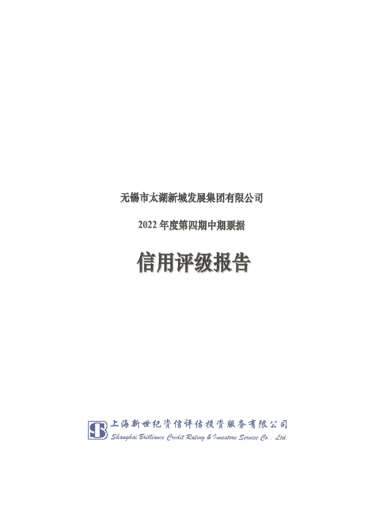 新世纪:无锡市太湖新城发展集团有限公司2022年度第四期中期票据信用评级报告.pdf