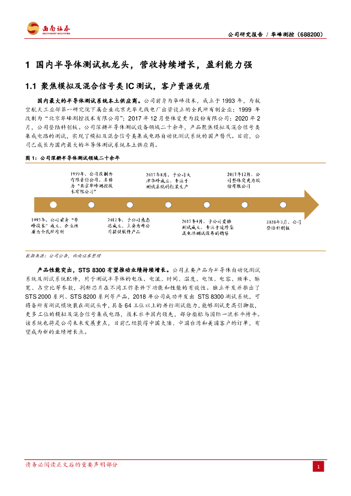 西南证券:华峰测控(688200)-国内半导体测试机龙头,加码SoC产品提升设备国产率.pdf