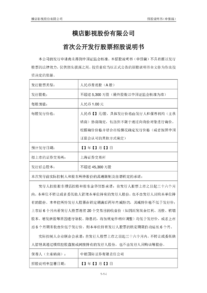 横店影视股份有限公司上交所主板IPO上市招股说明书.pdf