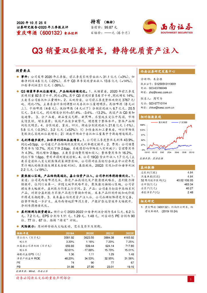 西南证券:重庆啤酒(600132)-Q3销量双位数增长,静待优质资产注入.pdf