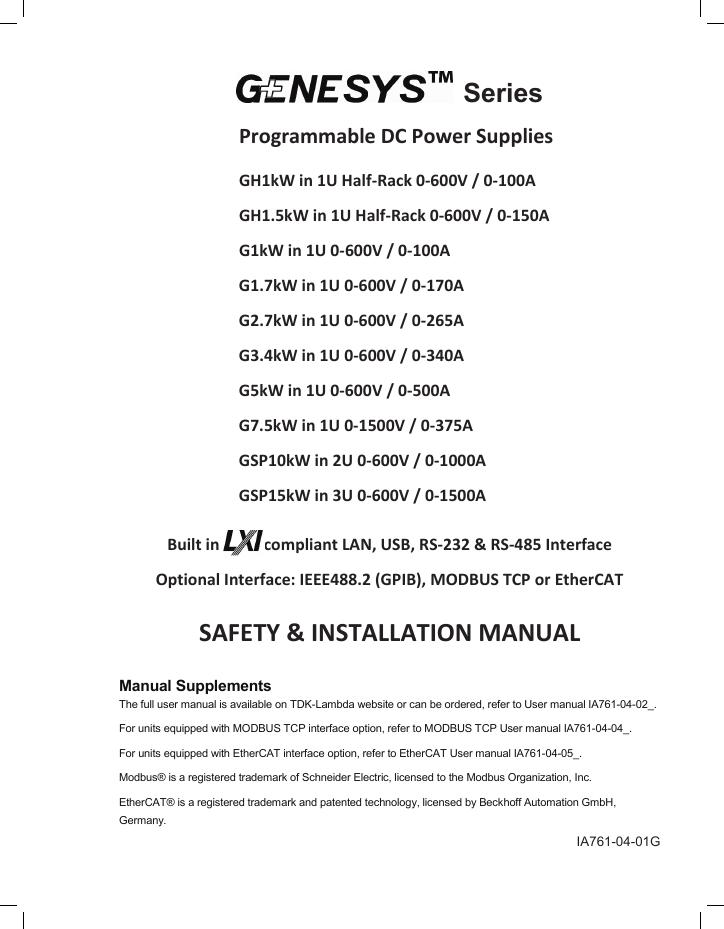 TDK-Lambda G1kW-G7.5kW 可编程直流电源安全安装手册.pdf